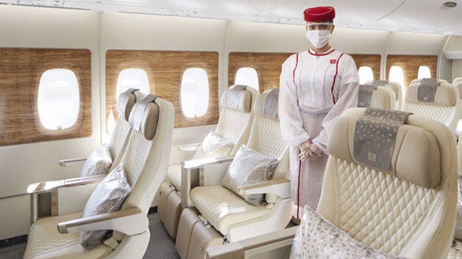 Emirates geçtiğimiz hafta yepyeni Premium Ekonomi koltuklarla donatılan en yeni A380 uçağını görücüye çıkardı. Yeni A380, 102 cm'e ulaşan geniş koltuk aralığının yanı sıra en yeni Boeing 777-300ER ‘Gamechanger’ (oyunbozan) uçağındakine benzer yeni ekonomi sınıfı koltuklar, imza niteliğindeki Duş Spa ve Uçak İçi Dinlenme Salonu gibi A380'in popüler First ve Business Class hizmetlerinde lüks ilaveler ile birlikte, yenilenmiş renk ve aksesuarlar sunuyor.
