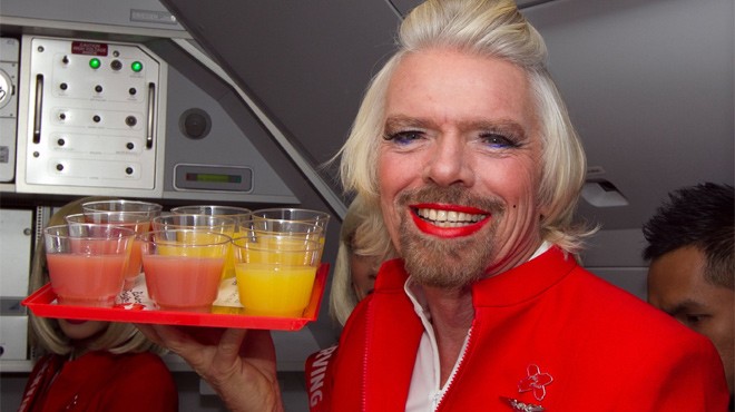 İki yıl önce, Branson ve AirAsia Group CEO'su Tony Fernandes, Formula 1 yarış takımlarıyla ilgili, her biri, Abu Dabi'deki 2010 Formula 1 Grand Prix'sini kendi takımının diğerinin önünde bitireceğine bahse girdi. Kaybeden, kazananın havayolunda kadın uçuş görevlisi olarak hizmet etmek zorunda kalacaktı. İddiayı Branson kaybetti.