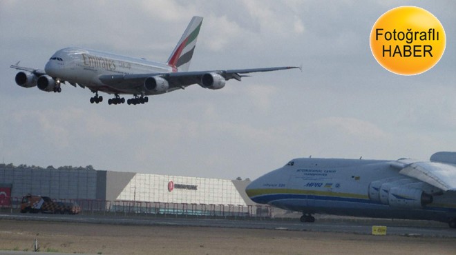 Uçaklardan ilki ‘Hayal’ anlamına gelen "Mriya" adlı Antonov-225 tipi dünyanın en büyük kargo uçağı. Diğeri ise dünyanın en büyük yolcu uçağı olan çift katlı süper jumbo jet Airbus A380. Yakıt ikmali yaptıktan sonra kalkış için pist başına gelen Mriya ile iniş için piste teker koymaya hazırlanan Emirates Havayolları'na ait Airbus A380, aynı karede görüntülendi.