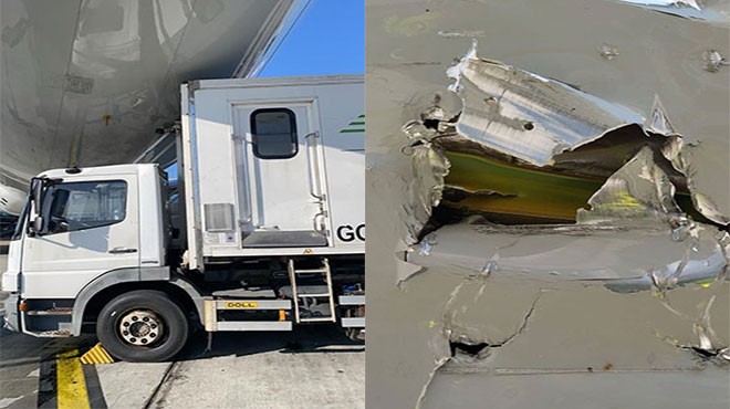 Brezilyalı LATAM Hava Yolları’na ait Boeing 777-32WER tipi uçağa park halindeyken ikram aracı çarptı.