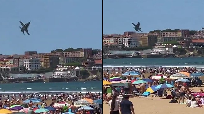 İspanya'nın kuzeyindeki Asturias'ta düzenlenen Gijón Hava Festivali’nde gösteriyi izleyen kalabalık o anda nefeslerini tuttu. Hornet, denize oldukça yaklaştı ancak pilot uçağı kurtarmayı ve belki de sonuçları çok ağır olabilecek bir kazayı atlatmayı başardı.