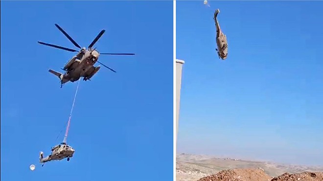 İsrail Hava Kuvvetleri'ne ait bir ‘Kara Şahin’ helikopteri, geçtiğimiz Salı günü zor hava koşulları nedeniyle acil iniş yaptı. İsrail Hava Kuvvetleri, muhtemelen bir CH-53 ağır yük taşıma helikopterini, askı kurtarma işlemi gerçekleştirmek üzere bölgeye gönderdi. Bu hassas işlem, yerdeki helikopteri bir dizi yüksek mukavemetli kabloyla bağlamayı ve güvenli bir yere taşımak için havaya kaldırmayı içeriyordu.