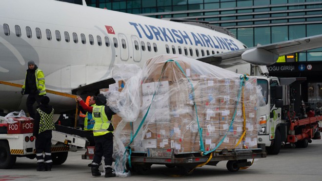 İGA İstanbul Havalimanı insani yardım aktarma merkezi görevi görüyor