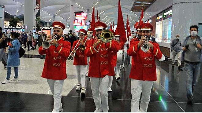 Cumhuriyet Bando Korteji tarafından terminal içerisinde marşlar çalındı. Sabahın erken saatlerinden itibaren havalimanına gelen yolcular da terminaldeki Cumhuriyet coşkusuna ortak oldu. Yolcular, havalimanı personelleri tarafından kendilerine hediye edilen Türk bayraklarını sallayarak bando ekibine eşlik etti. Bazı yerli ve yabancı yolcular coşkulu kutlamaları ölümsüzleştirmek için cep telefonları ile kayıt yaptı.