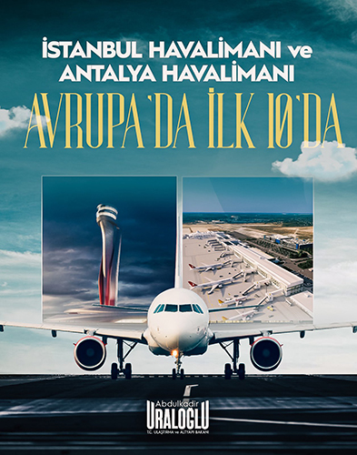Ülkemiz, havalimanlarına iniş ve kalkış trafiklerinde günlük ortalama 3 841 uçuş ile Avrupa’da en çok uçuş gerçekleştiren ilk 10 ülke arasında 6. sırada yer aldı.