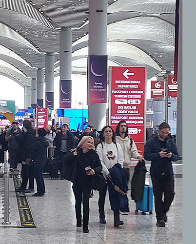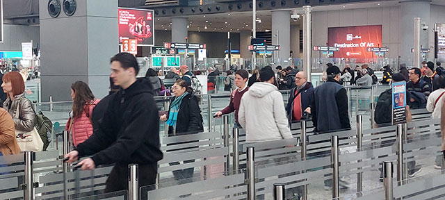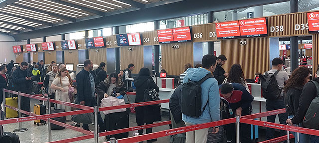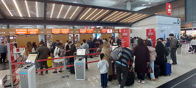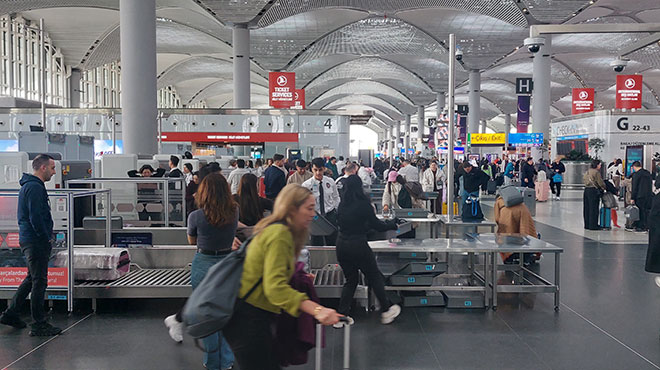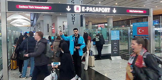 İstanbul Havalimanı iç ve dış hatlar terminalinde herhangi bir aksama yaşanmazken, kilit noktalardaki görevliler yolculara yardımcı oluyor.
