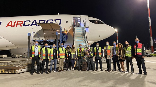 CMA CGM Air Cargo’nun ilk uçağı 5 Haziran sabahı saat 02.00’de İstanbul Hava Limanı’na iniş yaptı. Uçak köprüye yanaşırken DHMİ İtfaiyesi, takım ve denetim araçları park pozisyonuna gelerek ışıklarını açıp karşılamaya eşlik ettiler.