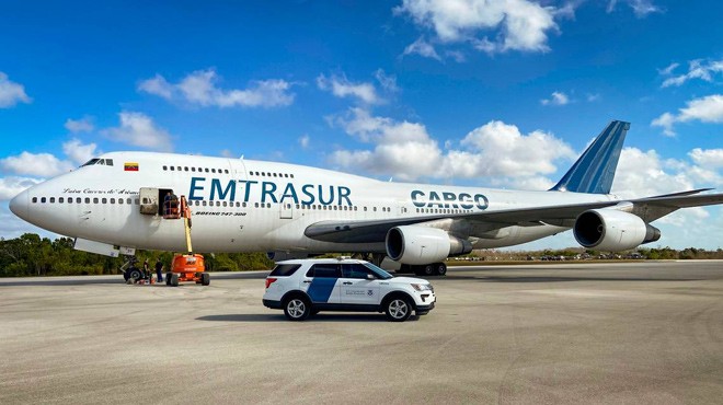 ABD, Venezuelalı bir kargo şirketinin İran'ın Mahan Hava Yolları şirketinden satın aldığı Boeing 747 tipi kargo uçağına, 'İran'la ilgili ihracat kısıtlamaları' kapsamında 12 Şubat 2024 Pazartesi günü Miami-Opa-locka Executive Havalimanı'nda ABD yetkililer tarafından el konuldu. ABD Hazine Bakanlığı, 2019'da İran hava yolu şirketi Mahan Air'i Devrim Muhafızları Ordusu ile bağlantısı iddiasıyla yaptırım listesine almıştı.