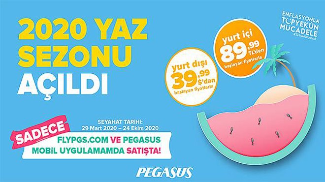 Türkiye’nin dijital havayolu Pegasus, heyecanla beklenen 2020 yaz sezonu biletlerini özel fiyatlarla satışa açtı. 22 Ekim’e kadar 2020 yaz sezonu biletlerini flypgs.com ya da Pegasus Mobil uygulaması üzerinden alan misafirler, 29 Mart – 24 Ekim 2020 tarihleri arasında yurt içine 89,99 TL, yurt dışına ise 39,99 $’dan başlayan avantajlı fiyatlarla seyahat etme fırsatı yakalıyor. Pegasus’un mobil uygulamasını indirmek isteyen misafirler, Apple Store ve Play Store’dan uygulamaya ulaşabiliyor.