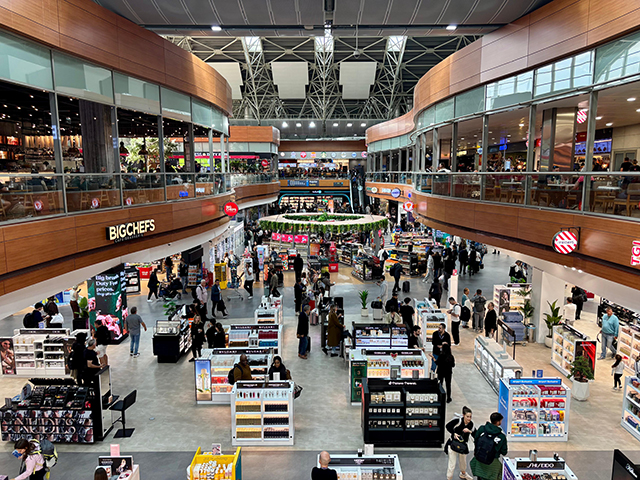 Geniş alanın verdiği rahatlık hissiyle birlikte konforlu bir alışveriş deneyimine olanak tanıyan dört bir yanı açık yeni alan, uçağa gidişte havalimanının artan yolcu kapasitesine ve dinamik yapısına uygun modern bir atmosfer sağlıyor.
