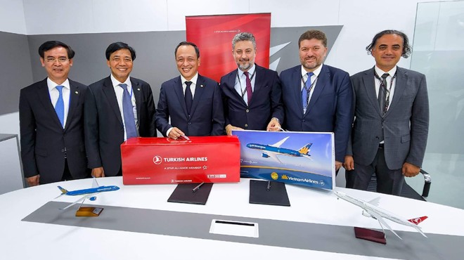 Dünyanın en çok ülkesine uçan hava yolu olan Türk Hava Yolları ve Vietnam Hava Yolları, İngiltere’de 18 Temmuz günü başlayan Farnborough Havacılık Fuarı’nda ikili ilişkileri güçlendirmek adına bir ‘’Mutabakat Bildirisi’’ imzaladı. İki ulusal bayrak taşıyıcı arasındaki iş birliği, ülkeler arası uygun bağlantılar oluşturmakla kalmayacak, aynı zamanda Vietnam, Türkiye, Avrupa ve Orta Doğu bölgeleri arasındaki ekonomik, kültürel ve sosyal ilişkilere de ivme kazandıracak.