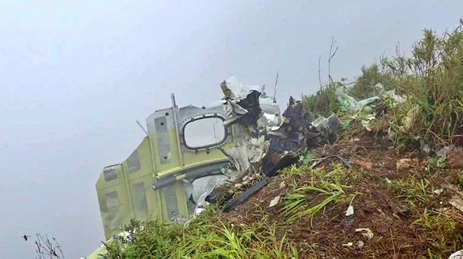 Uçağın enkaz parçalarının Bulusaraung Dağı'nda farklı yerlerde bulunduğu açıklandı. Görüntülerde, enkazın dağ yamacına dağıldığı görülüyor.