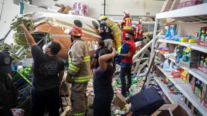 Meksika’nın Morelos eyaletindeki Temixco kentinde dün yerel saatle 13.00 sularında çift motorlu Beechraft King Air 90 tipi bir küçük uçak süpermarketin üzerine düştü. Düşen uçağın enkazı, tek katlı bir yapı olan süpermarketin duvarını yıkarak içeri kadar girdi.