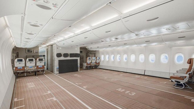 Havayolu, A380’deki bütün koltukları daha hafif kargolara alan oluşturmak için söktü. 300 metre küp'ten fazla hacim kapasitesi ve 60 tona yakın kargo sunabilen Hi Fly Airbus A380-800'ün içine bir göz atalım.