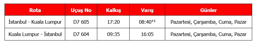 Malezya’daki Türkiye Cumhuriyeti Büyükelçisi Emir Salim Yüksel ise şunları söyledi: “Ülkelerimiz arasında yeni bir bağlantının daha kurulmasından mutluluk duyuyoruz. Bu hat, halklarımız arasındaki etkileşimi artırarak kültürel ve ekonomik açıdan önemli katkılar sağlayacak. Malezya, coğrafi olarak uzak ama gönülden yakın bir komşumuz. Aramızdaki mesafelere rağmen kalplerimiz her zaman yakın. Bu tür somut adımların Türk ve Malezya halklarını daha sık bir araya getireceğine ve dostluk bağlarını güçlendireceğine inanıyorum. Yeni hattın hayata geçmesinde emeği geçen herkesi kutluyorum.”