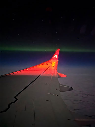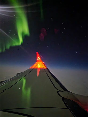 Oslo üzerinden Türkiye’ye getirilen uçak, kuzey ışıkları yakınından geçerken görsel şölen oluşturdu.