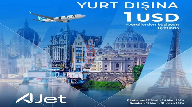 Kampanyayı sosyal medya hesaplarından duyuran Ajet, “AJet’le yurt dışına 1 USD’den başlayan fiyatlarla uçun. 22-24 Mart tarihleri arasında 1 USD + vergilerden başlayan avantajlı fiyatlarla yurt dışı biletinizi alın, 31 Mart-31 Mayıs tarihleri arasında birbirinden güzel şehirleri AJet’le keşfedin.“ paylaşımını yaptı.