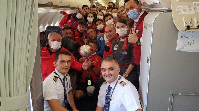 Uçuş hakkında bilgi veren Yılmaz, yaptığı anonsta, "Varşova'dan Avrupa Şampiyonluğuyla dönen değerli hocamız Osman Çakmak'ı ve tüm takımımızı kutluyorum. Sizlerin başarılarını tüm Türkiye paylaşıyor. Uçuş ekibi olarak milletimiz adına güzel mücadeleniz ve kazandığınız şampiyonluk için sizleri tebrik eder, başarılarınızın devamını dilerim. Tekrar uçuşta görüşmek üzere, iyi uçuşlar." ifadelerini kullandı.