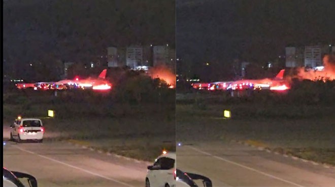 Olumsuz hava koşullarının olduğu havalimanına inişte motorlarından birini piste vurduğu iddia edilen uçak, bir anda alevler içerisinde kaldı.