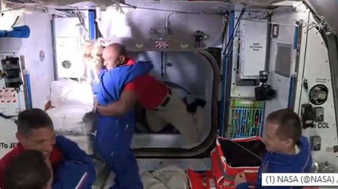 4 astronotun Uluslararası Uzay İstasyonuna girişi böyle görüntülendi. Görüntülerde UUİ’daki astronot ve kozmonotlar, istasyona giriş yapan astronotları kucaklayarak karşıladığı görülüyor. 4 astronot da girince alkış sesleri duyuluyor.