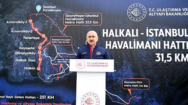Ulaştırma ve Altyapı Bakanı Adil Karaismailoğlu, uzunluğu 31,5 kilometre olan Halkalı-İstanbul Havalimanı metro hattı şantiyesinde incelemelerde bulundu. Dün sabah saatlerinde Olimpiyat Stadyumu yanında bulunan şantiye alanına gelen Bakan Karaismailoğlu burada yetkililerden metro hattı hakkından bilgi aldı, incelemelerde bulundu. Karaismailoğlu metro çalışmaları ile ilgili bilgiler vererek, "Halkalı-Havalimanı hattımız 31,5 kilometrelik bir metro hattı. Marmaray Halkalı istasyonundan başlıyor. Küçükçekmece Halkalı istasyonu ile Olimpiyat stadın oradaki istasyon, Kayaşehir istasyonu, Fenertepe, Arnavutköy ve havalimanına ulaşıyor. Çalışmalar hızlı bir şekilde devam ediyor. Yaklaşık üç bin kişinin çalıştığı bir şantiyeden, bir metro hattından bahsediyoruz. 31,5 kilometre bir metro hattı için uzun ve devasa bir proje kendi çapında. Bu proje yalnız başına değil, bu projeye entegre olan diğer metro hatlarımız var bizim. Yine havalimanından Gayrettepe'ye devam eden, 37 kilometrelik metro hattında da çalışmalar hızlı bir şekilde devam ediyor" diye konuştu.