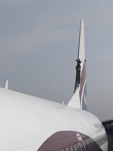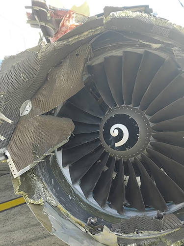 Sosyal medyada dolaşan fotoğraflar, uçağın sol motorunda ciddi hasar olduğunu gösteriyor.