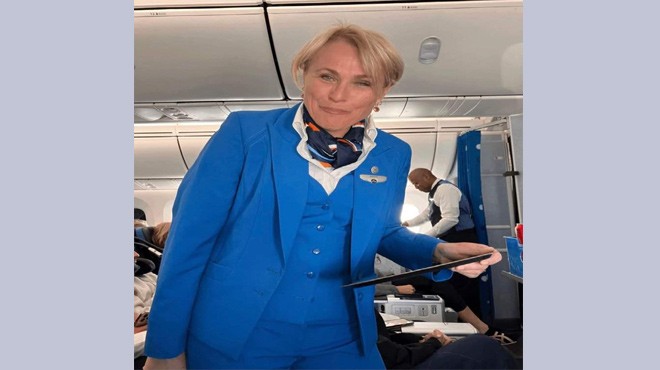KLM CEO'su Marjan Rintel, 20 Mayıs'ta Los Angeles - Amsterdam uçuşunda kabin memuru üniformasıyla yolculara hizmet verdi. CEO, kabin memuru üniformasıyla böyle görüntülendi.