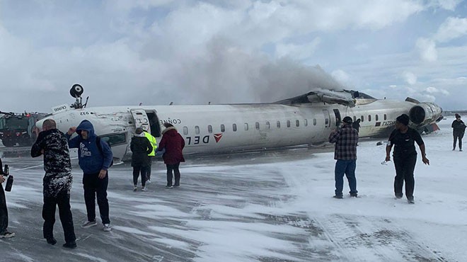 Delta Air Lines'a ait bir CRJ900, Toronto Pearson Havalimanı'ndaki pistte acil iniş yaptıktan sonra ters döndü. Olayda en az sekiz kişi yaralandı.