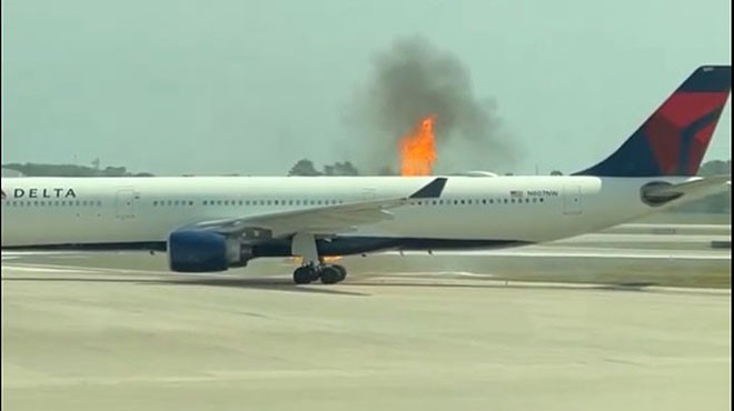 #SonDakika Sağ motoru alevler içerisinde kalan Amerikan Delta Hava Yolları uçağından yeni görüntü!