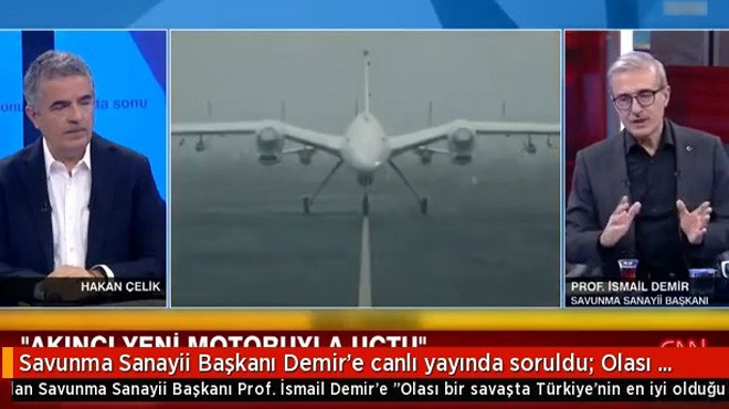 Savunma Sanayii Başkanı Prof. İsmail Demir, CNN Türk ekranlarında gazeteci Hakan Çelik’in sunduğu programa konuk oldu. Savunma sanayii alanındaki son gelişmeleri ve Ukrayna - Rusya savaşını değerlendiren Demir, çarpıcı açıklamalarda bulundu.