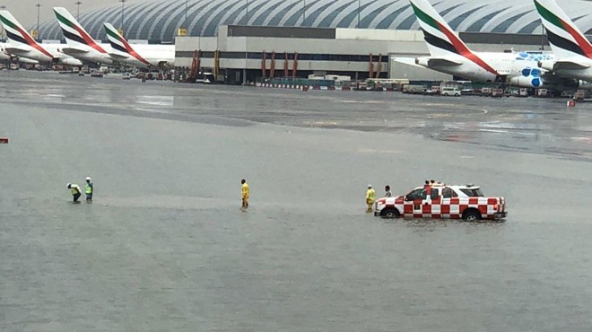 Dünyanın en işlek havalimanlarından biri olan Dubai Havalimanı’nda, şiddetli yağmur ve sel sonrasında pistler ile apron sular altında kaldı.