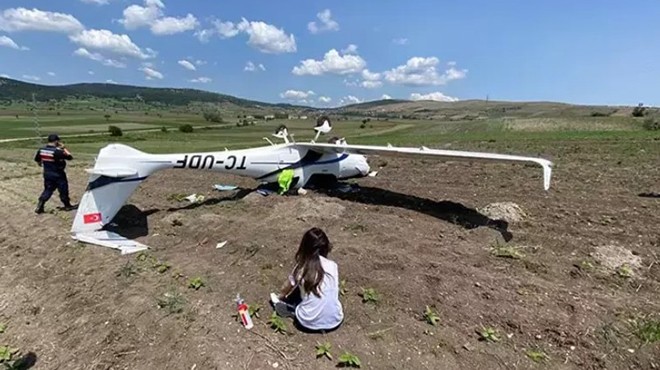 Pilot D.K.’nin tarlaya zorunlu iniş yaptığı uçak ters döndü.
