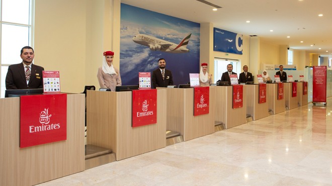 Emirates bir ilke daha imza atarak havaalanı dışındaki ilk uzaktan check-in terminalini hizmete açtı. Port Rashid’te bulunan Emirates check-in kontuarları, cruise gemilerinden çıkan yolcuların, sonraki Emirates uçuşlarındaki check-in işlemlerini aynı yerde yapmalarına imkân tanıyacak. Bu hizmet, Dubai’nin, önde gelen uluslararası cruise destinasyonu olmasına daha fazla katkı ve Emirates yolcularına daha fazla rahatlık sağlayacak. Yolcular, cruisedan indikleri noktada bulunan, ücretsiz uçuş check-in noktaları sayesinde, uçuşları için havaalanına gitmeden önce, Dubai’yi, yanlarında bavulları olmadan keşfetme rahatlığını elde etmiş olacak.