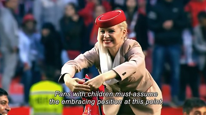 Estadio Da Luz Stadyumu’na (Işık Stadyumu) çıkan Emirates kabin memurları, uçaklarda kalkış öncesindeki güvenlik prosedürlerini stadyuma uyarladıkları bir gösteri sundu. Yaklaşık 6 yıl önce yapılan gösteride, stadyumu dolduran binlerce seyirci, maçın başlamasından önce yapılan sunumu büyük beğeni ile karşıladı ve stadyumdan alkışlar yükseldi. Büyük beğeni toplayan Emirates kabin ekibinin bu yaratıcı gösterisi, youtube'da milyonlarca kez izlendi.