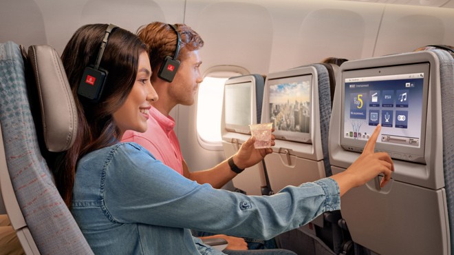 Emirates'in uçak içi eğlence yolculuğu neredeyse 30 yıl önce, ekonomi sınıfı yolcularının koltuk arkalarına televizyon ekranı yerleştiren ilk havayollarından biri olmasıyla başladı. Endüstri standartlarını belirlemeye ve yolcuları için erişilebilirlik sunma kararlığına sahip Emirates, dünyada uçak içi eğlence sistemindeki filmlerde sesli betimleyici müzikler ve kapalı altyazılar sunan ilk havayolu oldu.