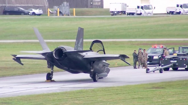 ABD Deniz Piyadeleri'nin "Yeşil Şövalyeler" lakaplı amfibi hücum filosuna ait F-35B Yıldırım II savaş uçağı, elektrik arızası nedeniyle acil iniş yaptıktan sonra taksi yaptığı esnada ön iniş takımlarının üzerine çöktü.