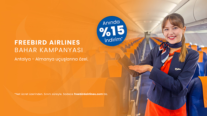 Antalya ile Almanya arasındaki tüm hatların dahil olduğu kampanya ile yolcular, ilkbahar seyahatlerini daha avantajlı fiyatlarla planlama imkânı buluyor. Türkiye’nin en deneyimli uluslararası havayollarından biri olan Freebird Airlines, yolcularına avantajlı kampanyalar ve müşteri odaklı hizmet anlayışıyla değer sunmaya devam ediyor.