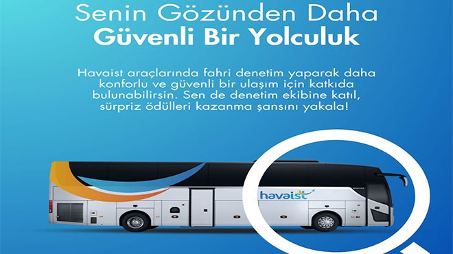 HAVAİST, yolcu memnuniyetini artırmak ve hizmet kalitesini sürekli iyileştirmek amacıyla yeni bir uygulamayı hayata geçiriyor. "Sizin Gözünüzden Daha Güvenli Bir Yolculuk" sloganıyla başlatılan proje kapsamında, HAVAİST araçlarında fahri denetim yaparak daha konforlu ve güvenli bir ulaşımın parçası olunabilecek.