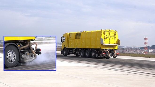 Son teknolojiyle donatılmış bu yüksek performanslı temizlik aracı, pist yüzeyinde oluşan lastik izleri ve boya kalıntılarını etkili bir şekilde temizleyerek uçuş güvenliğini artırıyor.