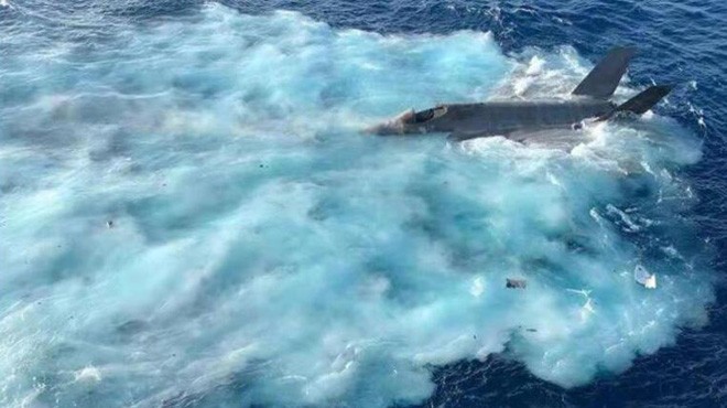 Denize düşen savaş uçağının görüntüleri sosyal medyaya düştü. Twitter'daki fotoğraflarda uçak gemisine inmeye çalışırken düşen F-35C görünüyor. Savaş uçağının kokpiti açık ve fırlatma koltuğu eksik.
