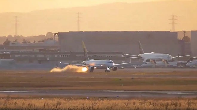 Alman Lufthansa Hava Yolları’na ait uçağın sağ motoruna Frankfurt Havalimanı’ndan kalkışta kuş girdi. O an an be an görüntülendi…