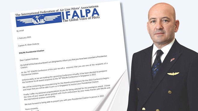 Türkiye Havayolu Pilotları Derneği TALPA, haberi duyururken, aynı zamanda derneğin genel sekreteri olan Kaptan Pilot R. Okan Üreksoy’u tebrik etti.