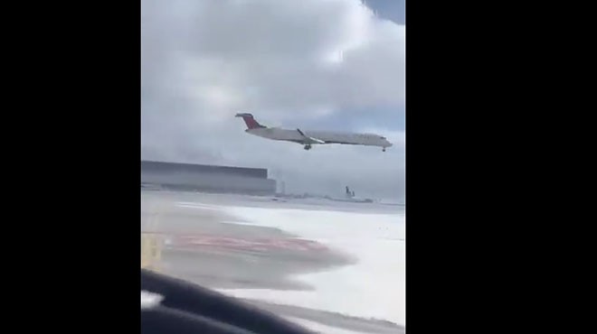 Delta Air Lines'in Minneapolis-Toronto seferini yapan CRJ900 tipi uçağı, Toronto Pearson Havalimanı'na büyük kaza yaşadı. Kaza anı başka bir uçağın pilotları tarafından an be an kaydedildi. İşte o anlar...