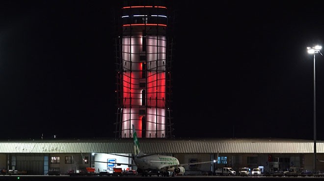 Sabiha Gökçen Havalimanının simgesi olan kule, Türk bayrağının renklerine büründü. Bu anlamlı görsel çalışma, gece boyunca havalimanına iniş-kalkış yapan uçaklardaki yolcular ve çevre sakinleri tarafından da ilgiyle takip edildi.