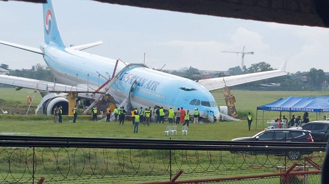 Dün Seul-Cebu seferini yapan Kore Hava Yolları’na ait Airbus 330 tipi uçak pistten çıkmıştı. Yoğun yağış altında iki kez pas geçen pilotlar, piste inmek için üçüncü denemeyi yaptı. Ancak pilotlar uçağı aşırı kaygan olan pistte tutamadı ve uçak pist dışına çıktı.