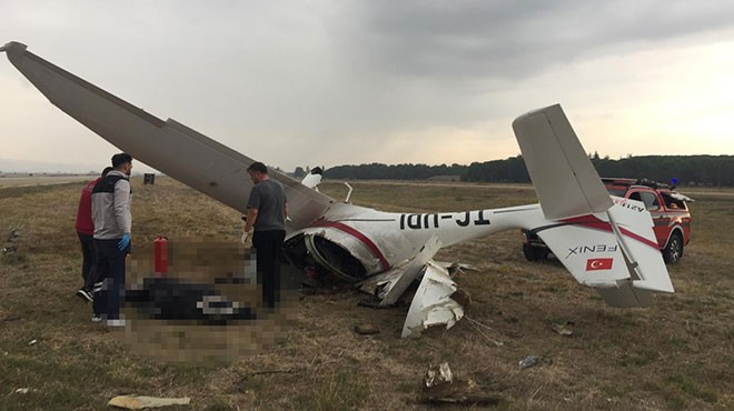 Celal Gökçen’e ait, öğretmen pilot Ünal Aster (61) ile öğretmen pilot adayı Emir Gülal Nalcı’nın (43) bulunduğu uçak, eğitim için kalkış yaptıktan kısa bir süre sonra bilinmeyen bir nedenle arazi içine düştü.