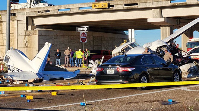 ABD Teksas’ta Piper PA-31 tipi küçük uçak havada arızalandı. Pilot, otobana inmeye karar verdi. Arabalara çarpan uçak hurdaya dönerken, 4 kişi yaralandı. pic.twitter.com/FsozkQb0Et