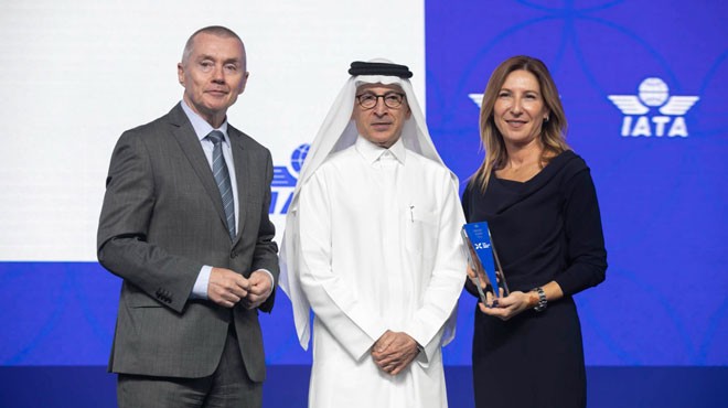 Soldan sağa: IATA Genel Müdürü Willie Walsh, Qatar Airways Grup CEO’su Akbar Al Baker, Pegasus Hava Yolları CEO’su Güliz Öztürk