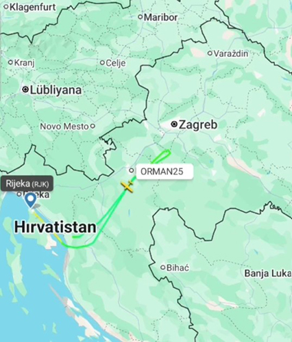 Hırvatistan'da Zagreb Havalimanı'na gitmek için Rejika Havalimanı'ndan kalkış yapan ancak hava muhalefeti nedeniyle telsiz irtibatı kesilen Orman Genel Müdürlüğü'ne ait AT-802 tipi uçak düştü. Uçağın havadaki son radar görüntüleri ortaya çıktı.