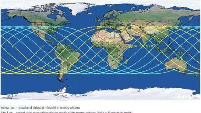 Üç yıldan kısa bir süre içinde beşinci kez, Çin'in uzay araçlarının parçaları Dünya'ya düştü. Bunlardan en dikkat çekeni 8 Mayıs 2021’de gerçekleşti. 18 tonluk bir roket Hint Okyanusu'na düştü. Ancak bölgedeki köyler dağılan enkaz parçaları yüzünden zarar gördü.
